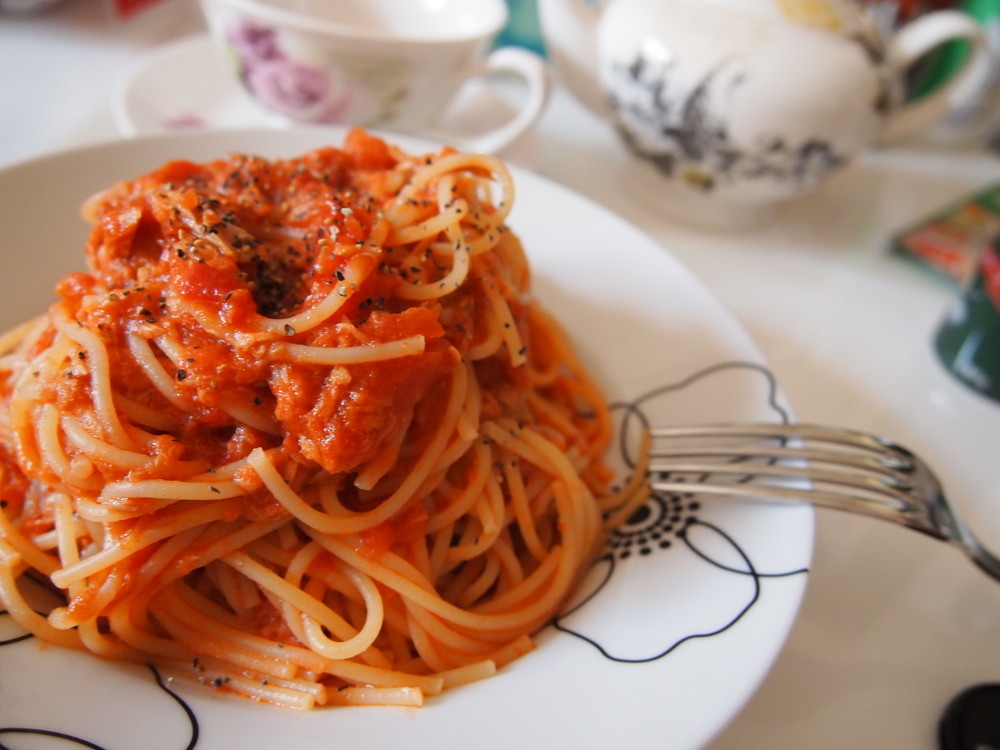 - ➁トマト缶で簡単!ツナとトマトのパスタ