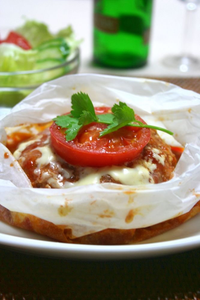 トマトの味わいをしっかり楽しむことができる煮込みハンバーグで、トマト味が好きな人に試してほしいレシピです。豆腐が入っていてヘルシーですが、チーズのかけすぎには注意しましょう。
