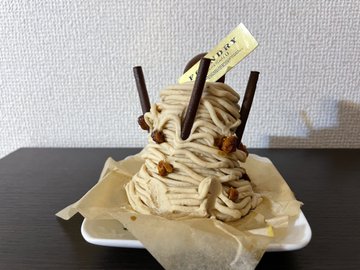 外側はイタリアンマロンクリームでデコレーションされていて、栗の甘露煮焼きとチョコレートとナッツがトッピングされています。オレンジ風味の生クリームにカスタードクリーム、中にも小さく切った栗の甘露煮が入った贅沢なモンブランです。