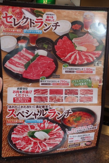 安楽亭のランチメニューは平日・土日共通