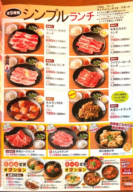- 安楽亭のランチメニューは平日・土日共通