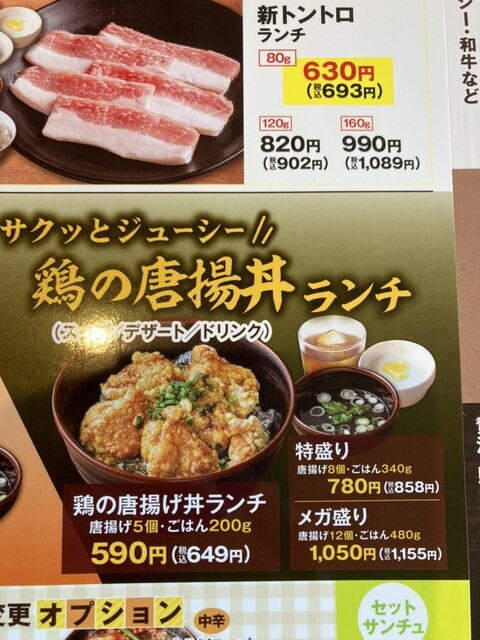 安楽亭のランチでは、鶏の唐揚げ丼が以下の3種類のサイズで販売されています。