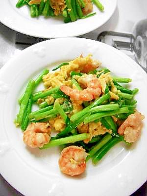 鮮やかな彩りが食欲を誘う炒め物で、風味と歯ごたえの良いニラの茎をたくさん食べられるレシピです。塩コショウのみのシンプルな味付けながらも、それぞれの素材の味がしっかりと引き出された一品です。