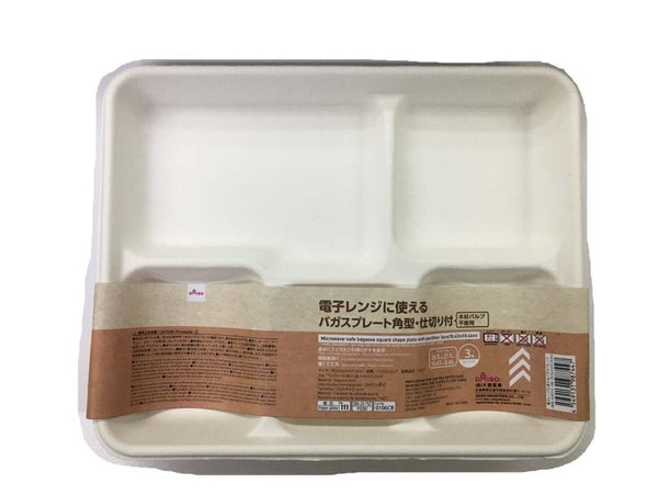 ダイソーでは、電子レンジの使用が可能な、仕切り付きのバガスプレートが販売されています。環境に優しいバガスパルプを使用した、大き目のプレートが3枚入っています。人気商品のため、店舗によっては在庫がないこともあるため、詳しくは店舗に確認してみてください。