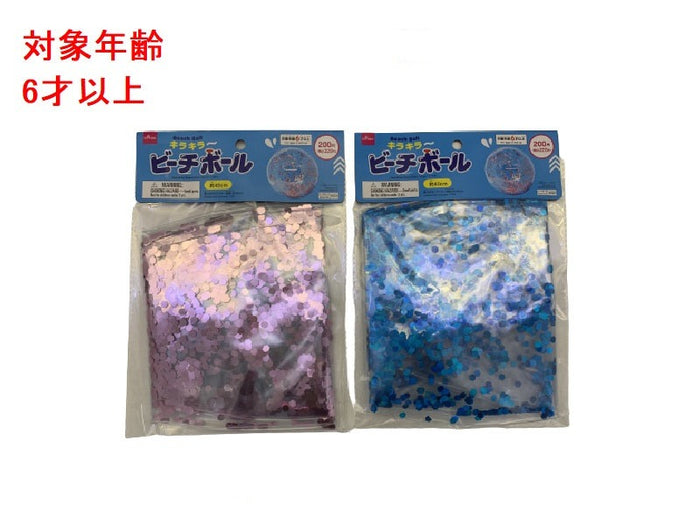 輝くグリッター入りのビーチボールです。ブルーとピンクの二色が販売されているので、好みに合わせて選んでください。