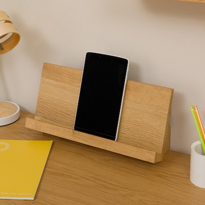 ニトリのタブレットスタンドは木の温かみが感じられる商品で、木製のテーブルや机に馴染みやすいデザインです。角度調整はできませんが、タブレットだけでなく、参考書や教科書を開いてスタンドに立てれば勉強に使うこともできます。