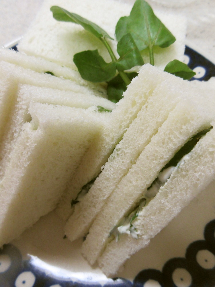 こちらはカロリーオフしたサンドウィッチを食べたい時におすすめのレシピで、クレソンとサワークリームの酸味がよく合う一品です。マーガリンを塗った食パンにきゅうりを置き、クレソンとサワークリームを挟むだけと簡単に作れます。