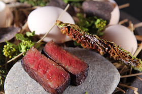 ザブトンはステーキにすると、肉の旨味を十分に堪能することができます。このレシピでは、フランベする際に紹興酒を使って香りづけしています。このまま塩コショウで食べても、肉汁を活用してソースを作っても美味しいです。