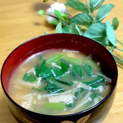 - 【つくれぽ315件】エノキと小松菜の味噌汁