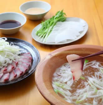 冬に旬を迎え脂がのった刺身用のぶりを、しゃぶしゃぶにしてさっぱりとしたポン酢で食べます。ぶりから出た出汁で作った雑炊も絶品で、ポン酢を少し足らして食べるのがおすすめです。野菜も沢山食べることが出来る、シンプルな冬の鍋料理です。