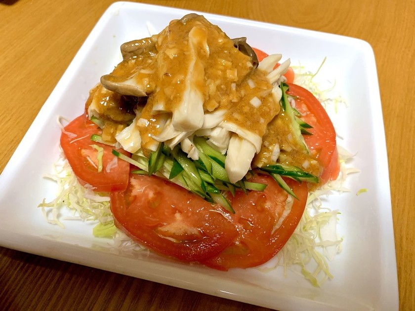 通常では鶏肉を使用して作ることが多いバンバンジーですがエリンギで作ることによって、サムゲタンと組み合わせやすい一品に仕上がります。下地に胡瓜の千切りを敷いておけば、エリンギと胡瓜の食感がバランスよく楽しめます。バンバンジーのタレに、白ごまやしょうがなどを加えてアレンジしてみるのも良いでしょう。