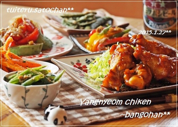 おかずの品数が多い夕飯向けのヤンニョムチキンの献立を紹介します。