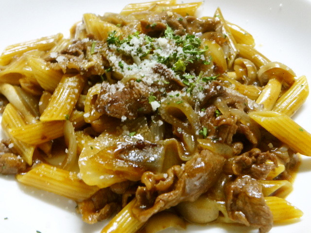 ③ペンネときのこのハッシュドビーフ煮