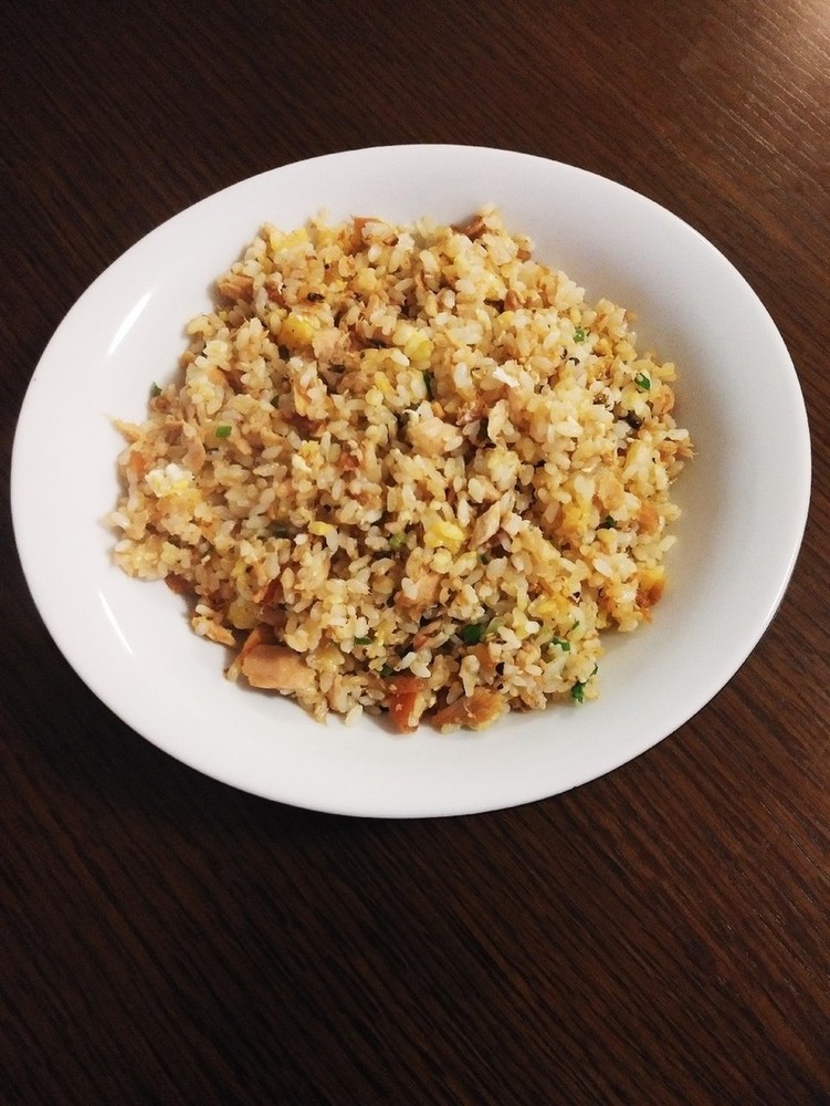 そのままおにぎりにしても美味しい人気の組み合わせで、米との相性抜群のチャーハンに仕上がります。炒めると酸味は飛ぶので、梅に抵抗のある人にもおすすめです。簡単で具沢山なのに、あっさりと楽しめるチャーハンです。