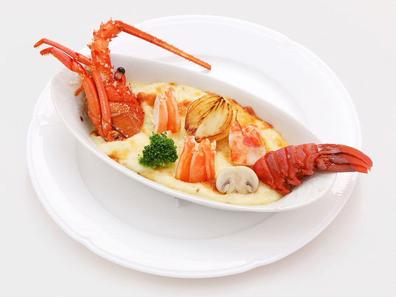 伊勢海老の頭や尻尾を飾りに使う、見た目も豪華なアレンジレシピです。伊勢海老は半身にしてから身を取り外し、食べやすい大きさに切って電子レンジで加熱してから、耐熱皿に戻すのがポイントとなっています。濃厚なホワイトソースに、伊勢海老の旨味が移ります。