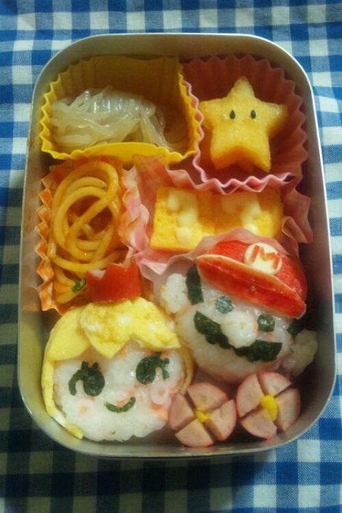 マリオやピーチ姫の顔を簡略化し簡単に作れるキャラ弁です。忙しい朝に短時間でキャラ弁を作りたい方におすすめです。