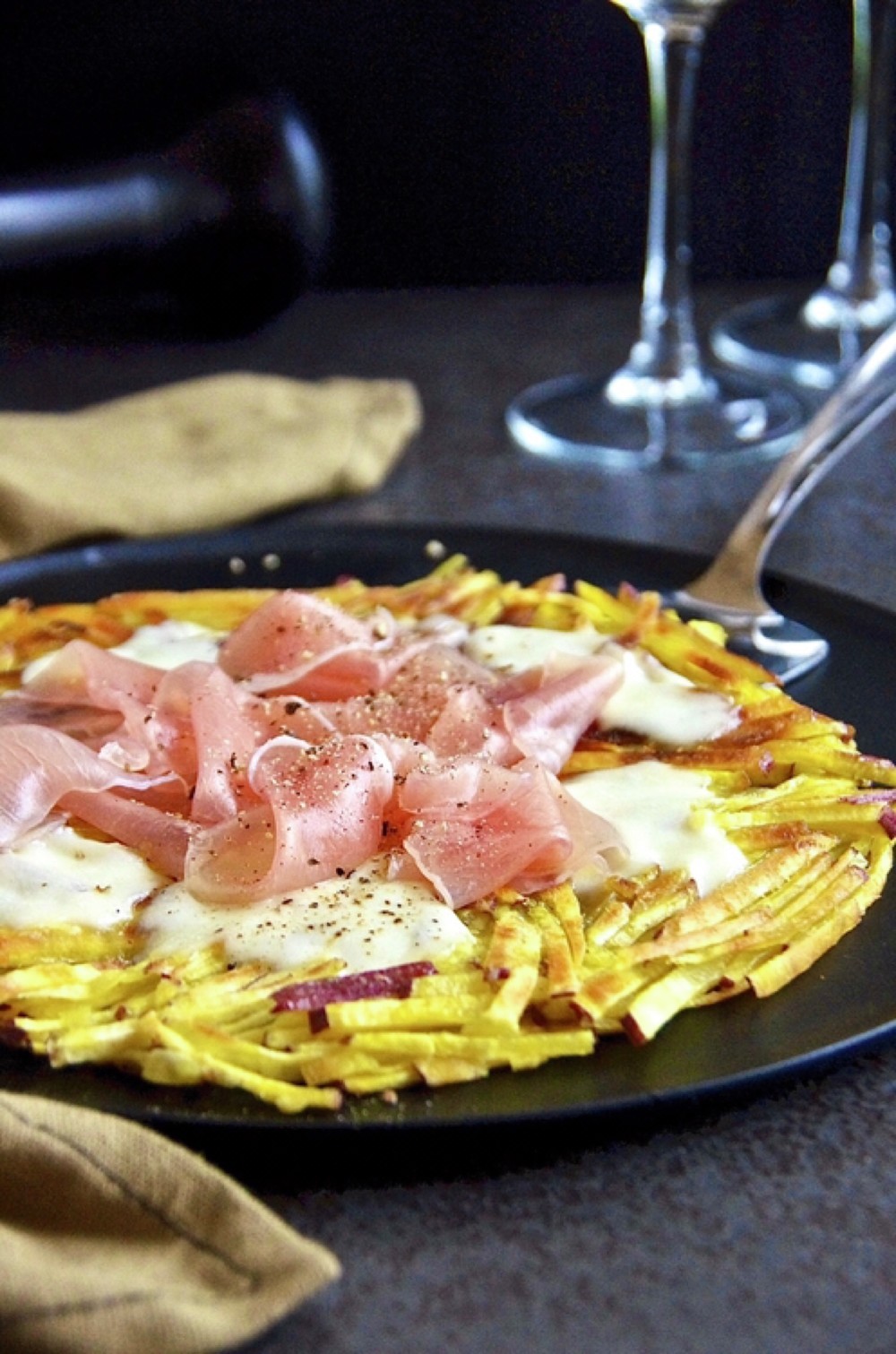さつまいもを食感よく香ばしく焼いて、モッツァレラチーズと生ハムを添えたおしゃれなおつまみレシピです。作り方は簡単ですが、生ハムの塩気にさつまいもの甘味やまろやかなチーズの味わいが調和し、絶品です。