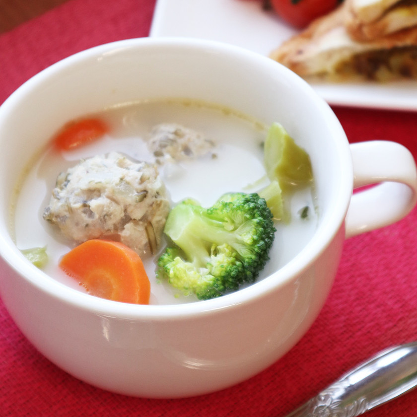 和風だしで作るクリームスープのレシピで、野菜と鶏団子が入り栄養満点の一品です。具だくさんのスープで満足感があるので、子供の朝ご飯に提供するのも良いでしょう。