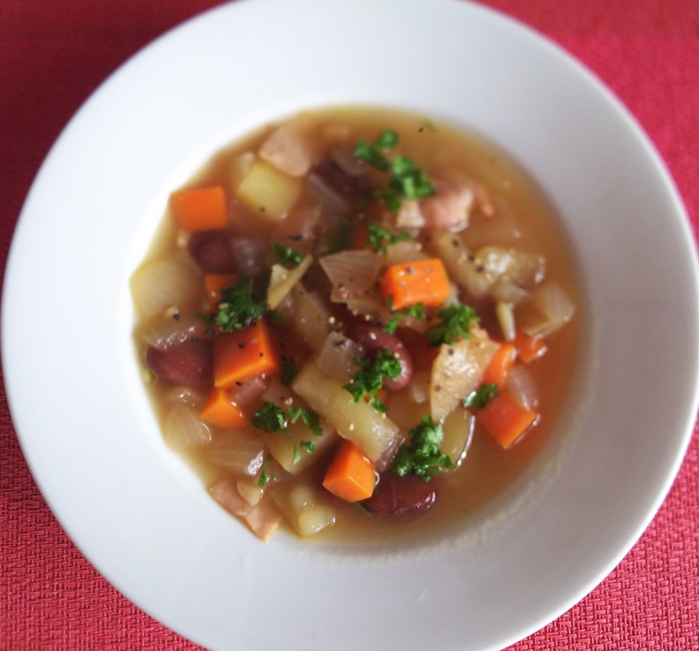 野菜をたくさん使った食べるスープは、サンドイッチに合わせるだけで栄養バランスの良い献立になるのでおすすめです。サンドイッチにはあまり使わない豆やじゃがいもなどの根菜を使うスープ料理で、全体の栄養バランスも整います。