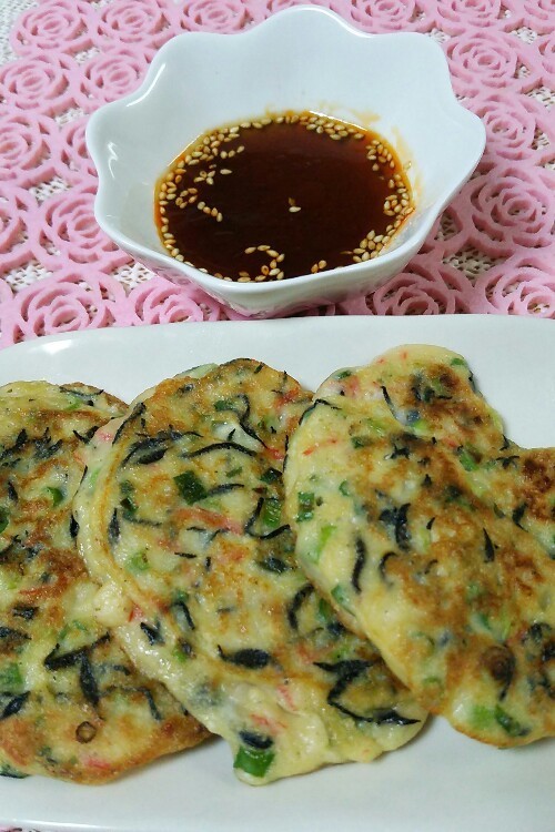 豆腐を使った柔らかい生地のお焼きも、離乳食におすすめです。ちくわやかにかまを使って旨味のある生地を作るレシピで、つけだれ以外の調味料を使用せず、塩分のバランスを取っています。