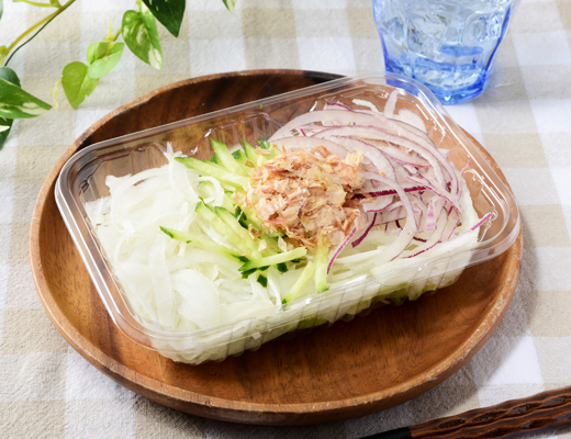 ローソンで販売されているこちらのサラダは、添加物不使用で、玉ねぎをメインに紫玉ねぎ・レタス・きゅうりが組み合わされかつおぶしが添付されています。玉ねぎサラダは自分で作ると薄く切ったり水にさらしたりと手間がかかりますが、こちらの商品を買えば忙しい時などにも時短で辛くない玉ねぎサラダが食べられます。