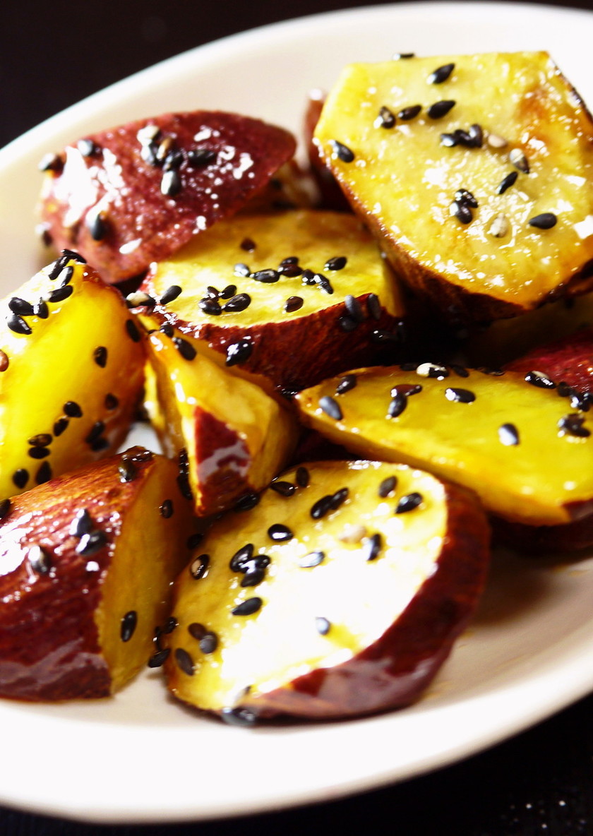 砂糖を甘味料で代替する方法の他にも、糖蜜の量を少なめにすればその分摂取カロリーを減らせます。糖蜜による外側のカリッとした食感は薄れますが、大学芋を砂糖の自然な甘さで楽しむことができます。